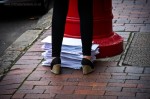 - Envelopes next to mailbox and high heel shoes