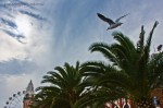 - Seagull in the blue sky flies to Sydney Luna Park