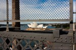 - Sydney Opera House, view through Harbour Bridge barriers