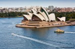 - Sydney Opera House and boats in the harbour, view from Harbour Bridge